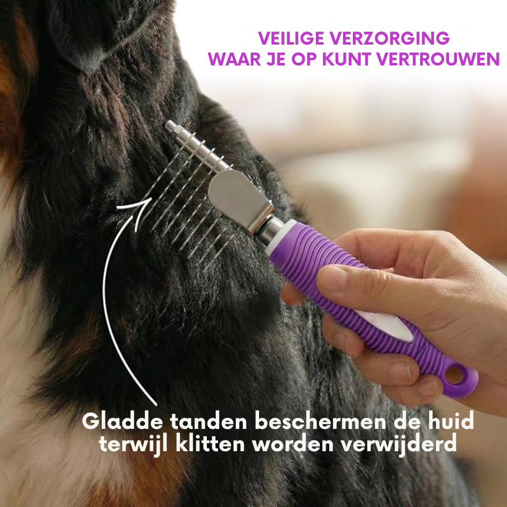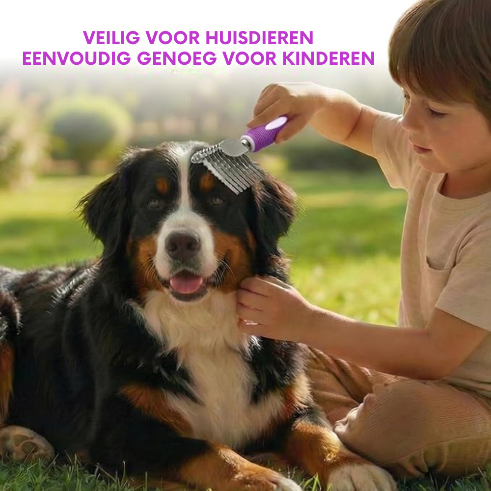 Zo eenvoudig in gebruik dat ook beginners – en zelfs kinderen onder toezicht – kunnen helpen. De Pro Ontklitkam is dé alles-in-één oplossing voor een gladde, klitvrije en gezonde vacht.
